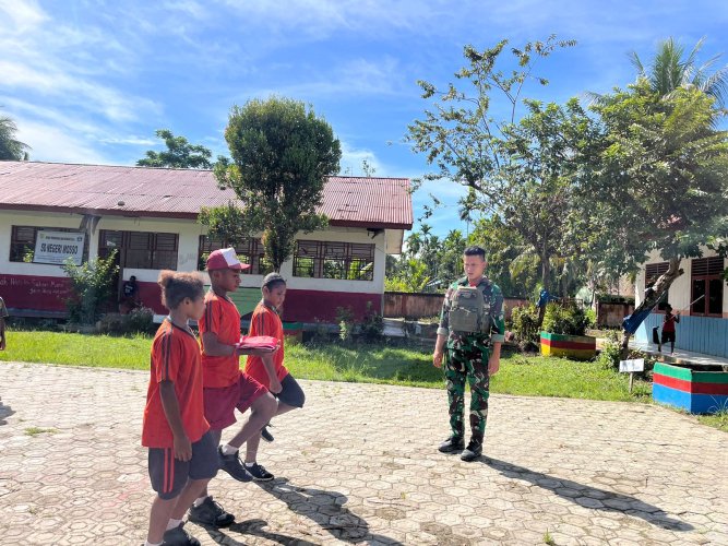 Tingkatkan Kualitas Pendidikan, Satgas Yonif 131/BRS Latih Kedisiplinan Siswa-Siswi SD Mosso