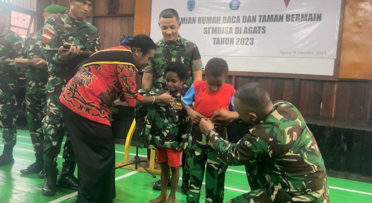 Papuanewsonline.com, Asmat - Komandan Satgas Yonif 125/SI'MBISA Letkol Inf Ronald Manurung meresmikan Rumah Baca Dan Taman Bermain Si'mbisa di Kampung Bis Agats, Distrik Agats, Kabupaten Asmat, Papua Selatan, Senin (10/10/2023).