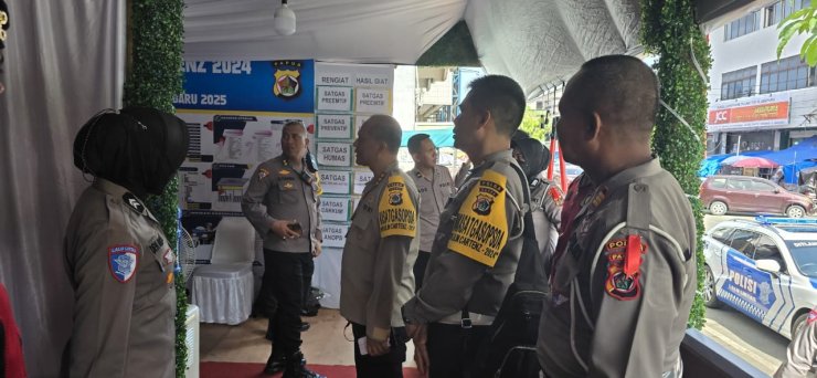 Papuanewsonline.com, Jayapura – Kaopsda (Dir Samapta Polda Papua) Kombes Pol. Sondang R.D Siagian S.I.K., melakukan pengecekan Pos Pengamanan Lilin Cartenz 2024 Polda Papua di sekitaran Kota Jayapura, pada Minggu (22/12/2024).
