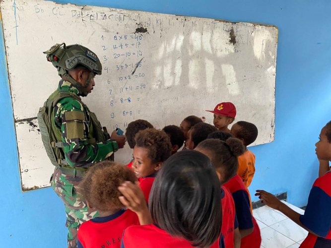 Turut Cerdaskan Generasi Penerus Bangsa, Satgas Yonif 762/VYS Jadi Gadik