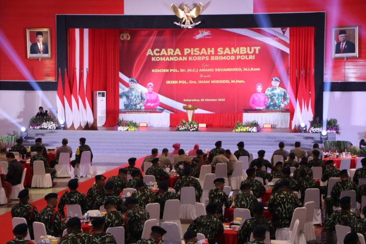 Seremoni tersebut menandai penyerahan kepemimpinan dari Komjen Pol Dr. (H. C.) Anang Revandoko, M.I.Kom, kepada Irjen Pol. Drs. Imam Widodo, M.Han, sebagai Komandan Korps Brimob Polri yang baru.