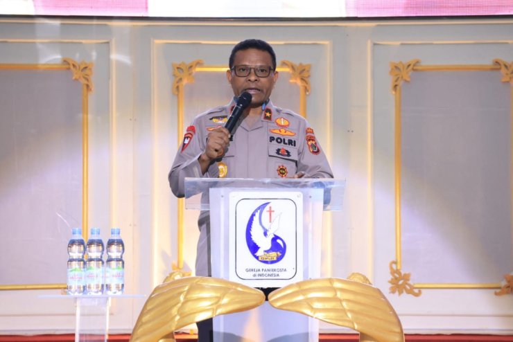 Papuanewsonline.com, Jayawijaya – Wakil Kepala Kepolisian Daerah Papua, Brigjen Pol. Patrige R. Renwarin, S.H,. M.Si, menghadiri Kebaktian Kebangunan Rohani (KKR) dalam rangka Pilkada Damai di Gereja Elshadai Wamena, Kabupaten Jayawijaya, Kamis (20/06/2024).
