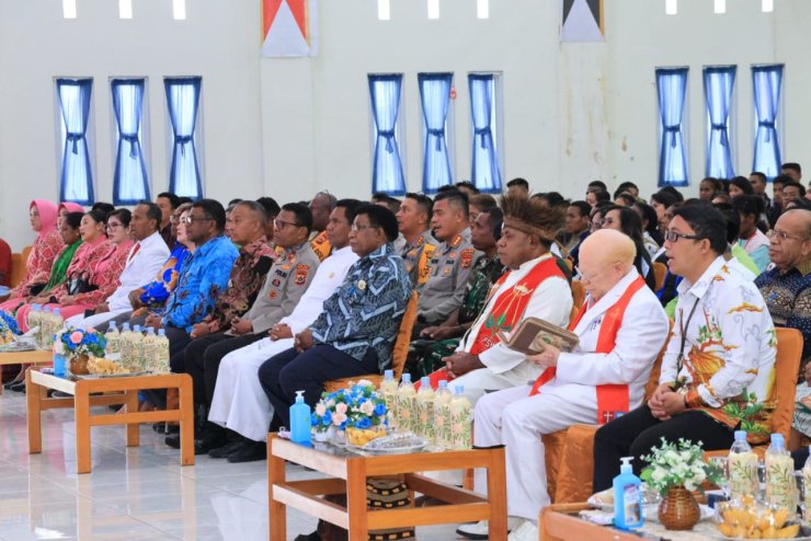 Ibadah KKR ini mengambil tema “Bangkit dan bermazmur bagi Kristus menuju Pilkada Tahun 2024 Damai yang dihadiri oleh Pj. Gubernur Papua Pegunungan, Velix Vernando Wanggai S.Ip M.Pa., L.O Polda Papua Di Provinsi Papua Pegunungan, Kombes Pol. Andi Yoseph Enock dan Forkopimda Kabupaten Jayawijaya.