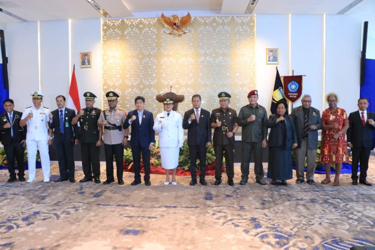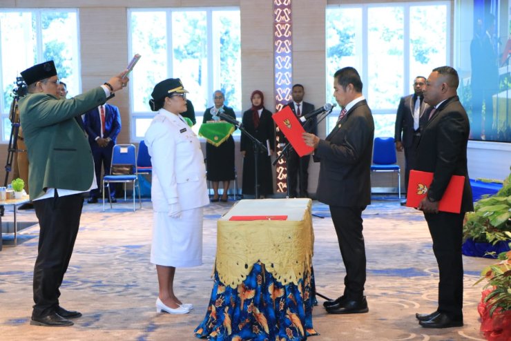 Papuanewsonline.com, Jayapura – Wakil Kepala Kepolisian Daerah Papua, Brigjen Pol. Patrige Rudolf Renwarin, S.H., M.Si., menghadiri kegiatan pengambilan sumpah janji jabatan dan pelantikan Pejabat Bupati Kepulauan Yapen Suzana Dewijana Wanggai, S.Pd, Msoc, SC oleh Pj. Gubernur Provinsi Papua Dr. M. Ridwan Rumasukun, SE.,MM yang dilaksanakan di Aula lantai 9 kantor Gubernur Papua, Kota Jayapura, Senin (29/07/2024).