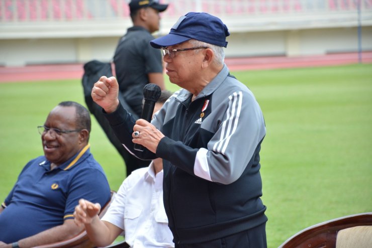 “Saya ingatkan juga bahwa pentingnya pengembangan ilmu olahraga (sport science) di Papua, yang akan menjadi bagian dari rencana pengembangan olahraga nasional. Kami berharap Papua dapat lebih cepat membangun sport science center dan mendukung kemajuan olahraga di daerah ini,” tutur K.H. Ma’ruf Amin.PNO-11