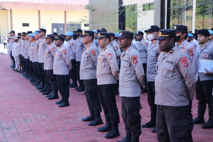 Kegiatan Apel Pagi personel Polda Papua ini bertujuan untuk meningkatkan kedisiplinan dan mengevaluasi pelaksanaan tugas personel Polda Papua.PNO-11