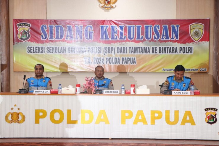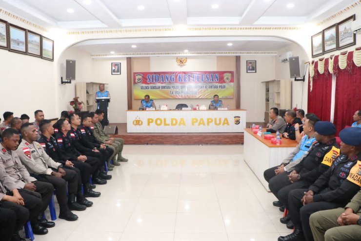 Papuanewsonline.com, Jayapura - Wakapolda Papua Brigjen Pol. Ramdani Hidayat, S.H., didampingi oleh Irwasda Polda Papua Kombes Pol. Alfred Papare, S.I.K., dan Karo SDM Polda Papua Kombes Pol I Wayan Gede Ardana, S.I.K, M.Si., memimpin pelaksanaan Sidang Kelulusan Peserta Seleksi Sekolah Bintara Polisi (SBP) dari Tamtama Ke Bintara Polri T.A 2024.