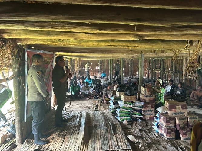 Silaturahmi ini berlangsung di JEUW (Rumah Bujang) Kampung Syuru, Distrik Agats Kabupaten Asmat, dan turut didampingi oleh Kapolres Asmat, AKBP Samuel D. Tatiratu, S.I.K., Wakapolres Asmat, Kompol Sutardi, S.H., M.H., Para Pamen Polda Papua, serta Para PJU Polres Asmat.