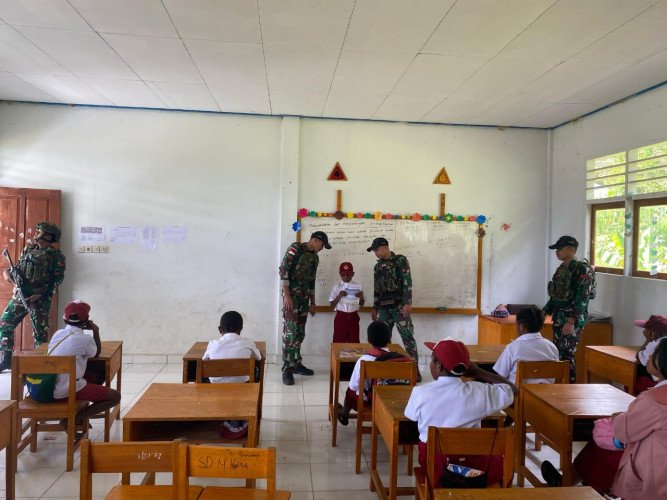 Wujudkan Generasi Hebat, Satgas Yonif 641/Bru Jadi Tenaga Pendidik Di SD Kelila