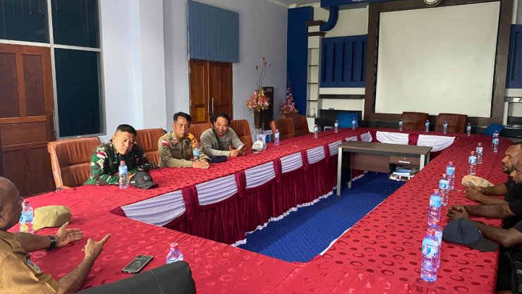 Wujudkan Pilkada Damai, Satgas Yonif 641/Bru Ikuti Rapat Sosialisasi Bersama Masyarakat Yalimo
