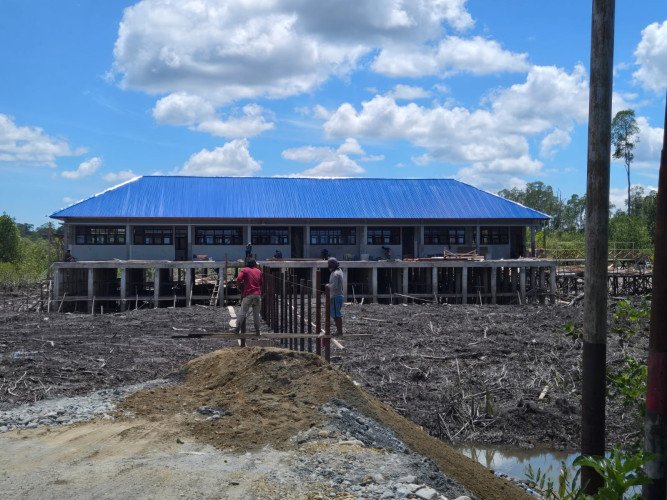 Proyek Pembangunan SMKN 5 Poumako Bermasalah, Proyek Diduga Dikerjakan Oknum PJU Polres Mimika