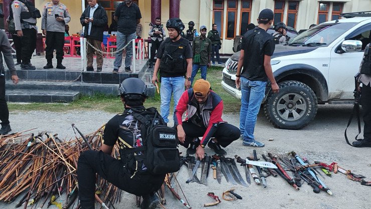 812 Senjata Tajam Diamankan Personil Gabungan Polda Papua Dalam Razia Di Tolikara