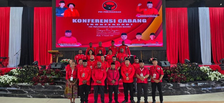Konferensi Cabang DPC PDI Perjuangan Kabupaten Mimika berlangsung di Graha Eme Neme Yauware dengan kehadiran sejumlah tokoh penting, serta menetapkan Adrian Andhika Thie sebagai ketua terpilih setelah melalui rangkaian sidang pleno dan pembahasan komisi.