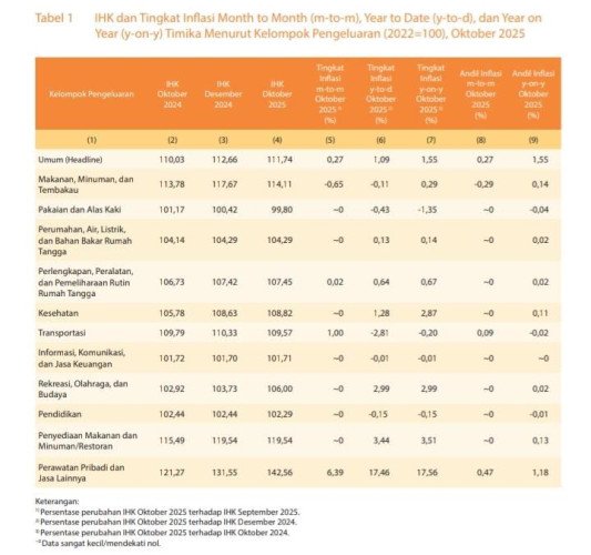 mengenai perkembangan Indeks Harga Konsumen (IHK) bulan Oktober 2025.