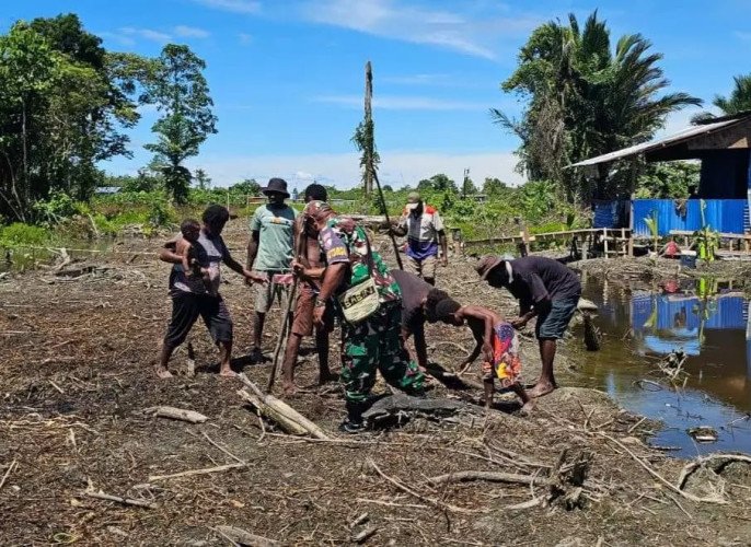 Lanud YKU Timika Dukung Kemandirian Pangan: Babinsa Dampingi Petani Tanam Jagung di Nawaripi