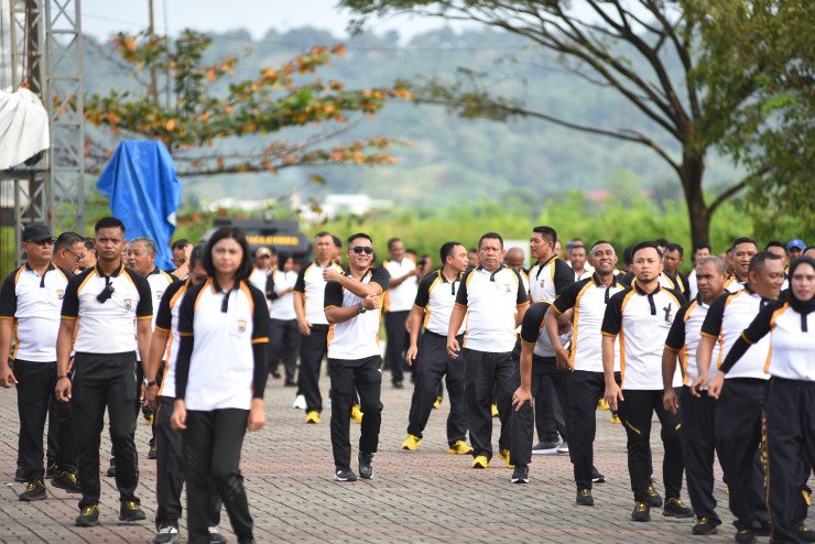 Papuanewsonline.com, Ambon - Kapolda Maluku Irjen Pol Drs. Eddy Sumitro Tambunan, M.Si, melaksanakan olahraga bersama personel Polda Maluku yang dihelat di lapangan Letkol Pol (Purn) Chr. Tahapary, Kota Ambon, Jumat (20/9/2024).Kegiatan yang bertujuan untuk mempererat silaturahmi dan menjaga kebugaran fisik ini turut dihadiri Wakapolda Brigjen Pol Samudi S.Ik., M.H, Irwasda dan para pejabat utama Polda Maluku."Momen ini menjadi ajang silaturahmi dan kebersamaan di antara pimpinan dan seluruh jajaran kepolisian di Polda Maluku," kata Kapolda dalam arahannya.Olahraga penting dilakukan oleh setiap personel Polri. Ini harus dilakukan untuk menjaga kesehatan fisik di tengah tuntutan tugas yang semakin kompleks. “Olahraga bersama ini juga merupakan wujud kebersamaan dan semangat soliditas yang harus terus kita jaga, baik di dalam tubuh organisasi maupun dalam melayani masyarakat,” ungkap Kapolda.Kegiatan olahraga bersama yang dilaksanakan meliputi senam pagi dan penguatan fisik. Olahraga diikuti dengan penuh antusias oleh seluruh personel Polda Maluku. PNO-12