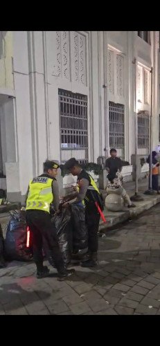 Aksi Humanis Polisi, Punguti Sampah Usai Perayaan Tahun Baru di Yogyakarta