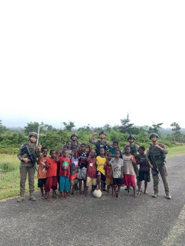 Personel Satgas Tindak Operasi Damai Cartenz Jalin Keakraban Dengan Anak-anak di Puncak Jaya