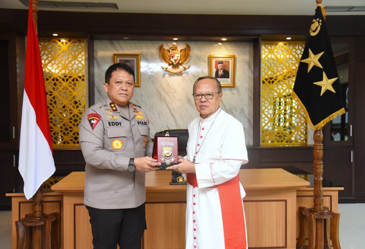Papuanewsonline.com, Ambon - Kapolda Maluku Irjen Pol. Drs. Eddy Sumitro Tambunan, M.Si menerima kunjungan silaturahmi dari Uskup Pastoral Khusus TNI dan Polri, Ignatius Kardinal Suharyo. Kedatangan Uskup yang didampingi Uskup Diosis Amboina Mgr. Seno Ngutra ini diterima hangat di ruang kerja Kapolda, Markas Polda Maluku, Kota Ambon, Selasa (13/8/2024).Saat menerima kunjungan silaturahmi dari Uskup Pastoral, Kapolda didampingi oleh Wakapolda Maluku Brigjen Pol Stephen M. Napiun Sik dan Kabid Hukum Polda Maluku."Kami menyampaikan terima kasih kepada Kapolda yang telah menerima kedatangan kami di Mapolda Maluku," kata Ignatius. Pada kesempatan itu, Ignatius meminta dukungan Kapolda Maluku terhadap pelaksanaan kegiatan pembekalan rohani bagi personel TNI Polri yang beragama Katolik yang akan dihelat di wilayah Maluku.Menanggapi permintaan Uskup Pastoral Khusus TNI Polri, Kapolda Maluku Irjen Eddy Sumitro Tambunan memberikan dukungan penuh terhadap rencana kegiatan dimaksud.Kapolda berharap kegiatan pembekalan rohani terhadap personel TNI dan Polri yang beragama Katolik dapat berjalan dengan lancar hingga selesai."Semoga kegiatan yang bertujuan untuk meningkatkan mental dan spiritual personel tersebut dapat berlangsung dengan lancar sampai selesai," harapnya. (PNO-12)
