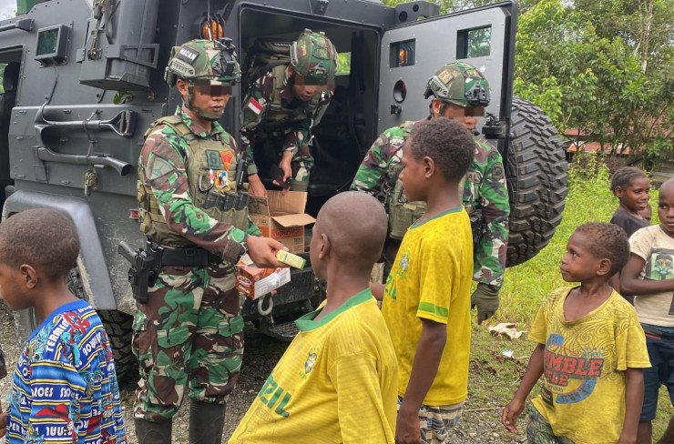 Papuanewsonline.com, Yahukimo – Satuan Tugas Batalyon Infanteri (Satgas Yonif) 6 Marinir, bagian dari Komando Operasi HABEMA di Papua, secara aktif melaksanakan tugas Operasi Pengamanan Perbatasan Mobil RI-PNG, khususnya di wilayah Kabupaten Yahukimo, Provinsi Papua Pegunungan. Pada hari Rabu (16/10/2024), Satgas Yonif 6 Marinir, khususnya Pos Bravo pimpinan Letda Mar Alter, melaksanakan Komunikasi Sosial (Komsos) dengan anak-anak Kampung Tomonsatu, Distrik Dekai, sambil melaksanakan patroli pengamanan wilayah.Dalam penekanannya kepada para Prajurit TNI, Komandan Komandan Satgas Yonif 6 Marinir, Letkol Mar Rismanto Manurung, menyampaikan pentingnya perhatian Satgas kepada kebutuhan dasar masyarakat di sekitar Pos. Oleh sebab itu, pada hari Rabu tersebut, para Prajurit TNI memanfaatkan patroli pengamanan wilayah melalui interaksi dan komunikasi dengan anak-anak Kampung Tomonsatu. Interaksi tersebut terjadi ketika Tim Patroli Satgas Yonif 6 Marinir melintasi wilayah Kampung Tomonsatu.Dengan tetap mengutamakan keamanan selama kegiatan, telah terjadi interaksi komunikasi yang harmonis antara para Prajurit TNI dengan anak-anak. Dalam komunikasi tersebut para pendamping anak-anak menyampaikan perkembangan situasi keamanan di wilayah Kampung Tomonsatu yang relatif aman dan kondusif. Lebih lanjut, anak-anak juga merasa gembira dengan kepedulian para Prajurit TNI yang singgah ke Tomonsatu. Sementara itu, di tempat terpisah, Panglima HABEMA, Brigjen TNI Lucky Avianto mengapresiasi inisiatif Satgas Yonif 6 Marinir yang melaksanakan Komsos dengan anak-anak di Kampung Tomonsatu."Hal tersebut merupakan wujud pelaksanaan tugas TNI melakukan Komunikasi Sosial inklusif dengan seluruh pihak di Daerah Tugas, dalam rangka mendukung upaya percepatan pembangunan di wilayah Papua," ungkapnya. PNO-12
