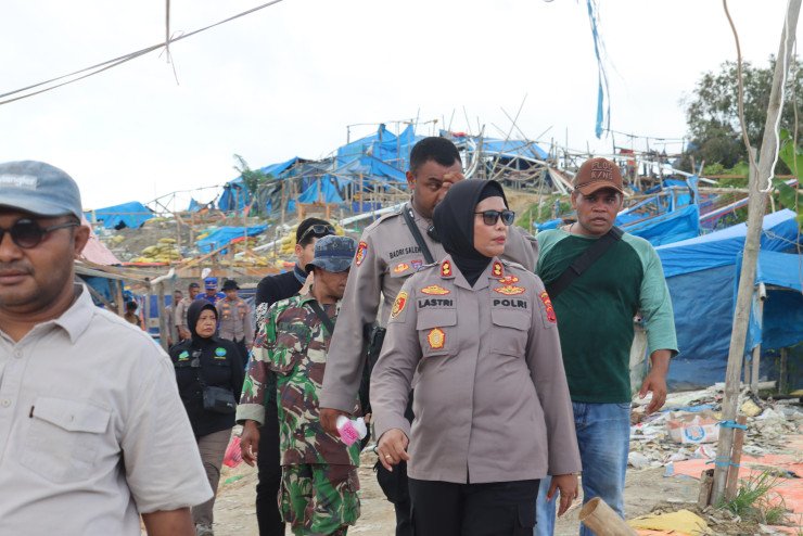 Papuanewsonline.com, Buru - Kapolres Buru AKBP Sulastri Sukidjang S.H.S.I.K.M.M meninjau Langsung areal pertambangan emas ilegal dan melakukan Pengecekan Pos Pengamanan serta Personil Di Lokasi Tambang Gunung Botak Dalam Rangka Operasi Peti Salawaku 2024.Setelah tiba di Dusun Wamsait Desa Dava kecamatan Waelata Kabupaten Buru Kapolres Buru AKBP Sulastri Sukidjang S.H.S.I.K.M.M.di dampingi Para PJU Polres meninjau langsung Areal pertambangan Emas Tanpa Ijin (PETI) Gunung Botak.Pada saat dilakukan peninjauan oleh Kapolres, didapati tidak ada aktifitas pada lokasi pertambangan tersebut.Kapolres Buru AKBP Sulastri Sukidjang S.H.S.I.K.M.M melihat langsung di Areal pertambangan, seperti lokasi Kolam janda, Gunung batu, Tanah Merah, dan sekitarnya terlihat tidak ada aktifitas pertambangan yang ada hanyalah tenda-tenda kosong bekas di tempati oleh para penambang ilegal, saat itu juga langsung di bongkar oleh petugas gabungan yang terlibat dalam operasi Peti Salawaku, namun ada juga para penambang yang dengan sadar membongkar tenda mereka.Untuk diketahui bersama bahwa kegiatan operasi Peti Salawaku ini digelar selama tujuh Hari, terhitung mulai dari tanggal 3 s/d tinggal 9 Juni 2024 yang melibatkan 94 personil gabungan TNI, POLRI dan Sat Pol PP.Selama 7 hari pelaksanaan operasi Peti Salawaku ini personil gabungan berhasil menurunkan kurang Lebih 2000 penambang ilegal, menghancurkan ratusan bak Rendaman, mesin Dompeng, dan tenda-tenda milik para penambang ilegal.Operasi Peti Salawaku 2024 ini dilaksanakan dengan berpedoman pada cara bertindak dilapangan yaitu dengan melakukan pola pendekatan preemtif dan preventif kepada masyarakat penambang yang ada di Gunung Botak dan sekitarnya, Mulai hari ini tanggal 3 s/d 5 Juni melakukan pola pendekatan secara preemtif, tanggal 6 s/d 7 Juni melakukan pola pendekatan preventif dan nantinya di tanggal 8 dan 9 Juni 2024 adalah pola pendekatan Represif atau penindakan hukum jika masyarakat penambang tidak menghiraukan himbauan yang sudah di sampaikan oleh petugas.Namun demikian sesuai petunjuk dan arahan Kapolres agar dalam pelaksanaan Operasi Peti Salawaku ini diupayakan agar jangan ada gesekan dengan masyarakat, tidak boleh ada kekerasan terhadap masyarakat dan tetap upayakan Lakukan langkah-langkah humanis. (PNO-12)