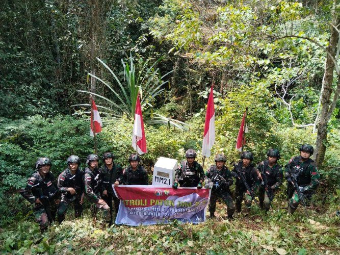 Papuanewsonline.com, Jayapura - Dalam menyambut 17 Agustus satuan tugas pengamanan perbatasan Batalyon Infanteri 122/TS Pos Mosso melaksanakan patroli patok batas negara MM 2.1 yang berjarak kurang lebih 17 km dari Kampung Mosso, Distrik Muaratami, Kota Jayapura, Jumat (16-08-2024).Dipimipin langsung oleh Danpos Mosso Letda Inf Muhammad Thamrin Lubis beserta 13 anggota lainnya berjalan melaksanakan patroli patok batas negara MM 2.1 dengan didampingi oleh Patop Lettu CTP Juhartanto untuk selanjutnya memeriksa kondisi disekitar patok batas tersebut, perjalanan menuju patok batas negara MM 2.1 memakan waktu kurang lebih 5 hari lamanya, dengan melewati beberapa medan yang cukup berbahaya seperti menyebrang Sungai, Rawa dan juga gunung yang curam. Rintangan demi rintangan dilalui oleh personil Pos Mosso saat melaksanakan Patroli menyusuri Hutan untuk menjalankan Tugas yang sebagaimana tugas pokok dalam Satgas pengamanan perbatasan, personel Pos Mosso yang dipimpin oleh Letda Inf Muhammad Thamrin Lubis setelah selesai sampai dipatok batas MM2.1 serta melaksanakan pembersihan disekitar patok dan juga mengganti bendera yang sudah lusuh dengan yang baru, kemudian personil berjalan kembali menuju Pos dengan tidak melupakan protap yang ada. Seperti penekanan Dansatgas Letko Inf Diki Apriyadi, S,Hub.Int, tugas pokok Satgas Yonif 122/TS menjaga keutuhan wilayah perbatasan darat RI-PNG, dengan mengedepankan bidang pengamanan dengan melaksanakan pemeriksaan jalan lintas, patroli patok mengecek patok dan patroli jalur perlintasan Ilegal untuk mencegah penyusupan dan penyeludupan barang ilegal.Personil sampai di Pos Mosso dengan aman dan tanpa kekurangan apapun, selanjutnya personil melaksanakan doa bersama telah melaksanakan patroli dengan aman dan selamat. (PNO-12)