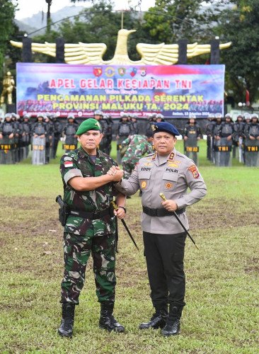 Papuanewsonline.com, Ambon - Pangdam XV/Pattimura Mayjen TNI Syafrial, PSC., M.Tr.(Han) dan Kapolda Maluku Irjen Pol Drs. Eddy Sumitro Tambunan, M.Si, secara bersama memimpin apel gelar pasukan TNI untuk kesiapan pengamanan Pilkada serentak Tahun 2024.Apel gelar pasukan yang dihelat di lapangan apel Yonif 733/Masariku, Selasa(13/8/2024), ini turut dihadiri Danlantamal IX/Ambon, Kasdam XV/Pattimura, Danlanud Pattimura, Asisten I Bidang Pemerintahan dan Kesejaterahaan Setda Provinsi Maluku, Ketua KPU Provinsi Maluku, Perwakilan Ketua Bahwaslu Provinsi Maluku, PJU Gabungan TNI-POLRI, dan Personel Gabungan TNI-POLRI. Pangdam dalam sambutannya mengatakan, pentahapan Pilkada serentak yang akan dihelat tanggal 27 November 2024 mendatang telah dimulai sejak bulan ini. "Oleh karena itu saat ini kita melaksanakan apel gelar pasukan untuk memastikan kesiapan kita baik personel maupun materil dalam menghadapi pilkada serentak," kata Pangdam. Sebagai aparat TNI-Polri tentunya memiliki andil yang penting dalam mengamankan Pilkada. Olehnya itu, personel harus disiapkan secara optimal, sekaligus memonitoring perkembangan situasi keamanan di wilayah. Hal ini dilakukan agar pilkada dapat berjalan dengan aman, lancar dan sukses."Personel TNI akan melaksanakan tugas BKO ke Polda Maluku untuk membantu Polda Maluku dalam Pengamanan Pilkada nantinya," katanya. Ia mengaku, situasi menjelang Pilkada tentu berpotensi membuka celah dari berbagai ancaman yang disebabkan karena perbedaan pandangan Politik. Pangdam berharap setiap personel dapat memonitor situasi keamanan yang ada. Tingkatkan kewaspadaan kesiapsiagaan dalam menghadapi dan mengawal jalannya Pilkada 2024, sesuai tugas TNI yang tercantum dalam UU 34 Tahun 2004 tentang TNI. "Mari kita bersama-sama menjaga kondusifitas dan stabilitas keamanan dalam menghadapi Pilkada serentak di Provinsi Maluku, agar pelaksanaan Pilkada dapat berjalan dengan aman dan lancar tanpa hambatan ataupun gejolak yang berarti, kita semua bersaudara, basudara Pattimura,” ungkapnya. Untuk membantu pengamanan Pilkada 2024 di Maluku, Pangdam mengaku pihaknya telah menyiapkan kurang lebih 1.962 personil TNI. Ribuan personel disiapkan untuk membantu mengamankan pelaksanaan Pilkada 2024."Kami juga menyiapkan personel cadangan kurang lebih 600 orang yang digunakan sewaktu-waktu jika ada perubahan situasi, beserta alutsista yang diperlukan,” kata Pangdam.Di tempat yang sama, Kapolda Maluku dalam sambutannya juga menyampaikan terima kasih dan penghargaan yang setinggi-tingginya kepada Pangdam XV/Pattimura dan Jajaran yang telah melaksanakan apel gelar pasukan hari ini. Apel gelar pasukan yang dilaksanakan ini menunjukan kesiapan, dedikasi dan sinergitas yang luar biasa dalam mendukung tugas Polri khususnya dalam melaksanakan pengamanan Pilkada serentak tahun 2024. Kerjasama yang kuat antara TNI-POLRI, lanjut Kapolda merupakan pilar utama, dalam menjaga stabilitas keamanan di wilayah Provinsi Maluku. "Dan Saya yakin dengan dukungan penuh dari rekan-rekan TNI serta singritas yang solid dengan semua instansi terkait dan masyarakat Kita dapat menjamin proses demokrasi ini berjalan dengan aman lancar dan baik," harapnya.Menurut Kapolda, semua pihak telah memahami perjalanan pilkada. Proses demokrasi ini merupakan salah satu momen krusial dalam perjalanan demokrasi. "Tugas kita bukan hanya mengamankan tetapi juga untuk memastikan bahwa hak-hak demokrasi seluruh masyarakat Maluku dapat terlaksana dengan baik," katanya. Kapolda berharap setiap anggota yang bertugas dapat meningkatkan kewaspadaan dalam menjaga integritas dan bekerja dengan penuh rasa tanggung jawab. Orang nomor 1 Polda Maluku ini juga mengingatkan bahwa keberhasilan Pilkada tidak hanya menjadi tanggung jawab individu tetapi merupakan tanggung jawab bersama. "Kita sama-sama yang akan menentukan masa depan bangsa," ucapnya.Sehubungan dengan pelaksanaan Pilkada serentak, Polda Maluku akan menggelar Operasi Mantap Praja Salawaku 2024. Operasi ini dilakukan dengan menggelar fungsi-fungsi Kepolisian dilapangan dalam bentuk Satuan Tugas di tingkat daerah. "Terima Kasih bagi rekan-rekan TNI atas dukungan dan kerjasamanya, marilah kita jadikan apel ini untuk menyatukan tekad dan komitmen dalam rangka mengawal dan mengamankan serta mensukseskan Pilkada Serentak Tahun 2024," pungkasnya. (PNO-12)