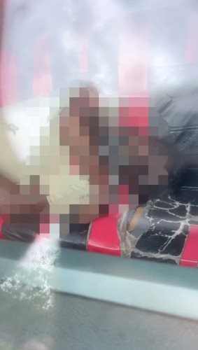 terlihat terbaring di dalam kabin mobil dengan kondisi mulut membengkak serta