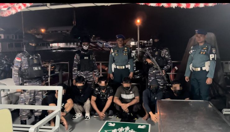 Papuanewsonline.com, TBK - TNI AL dalam hal ini Tim Fleet One Quick Response (F1QR) Pangkalan TNI AL Tanjung Balai Karimun (Lanal TBK) bersama Tim Gabungan Satgas TNI AL kembali berhasil mengamankan Pekerja Migran Indonesia (PMI) non prosedural di Pelambung Kecamatan Tebing, Kabupaten Tanjung Balai Karimun, Kepulauan Riau, Minggu (18/08/2024) kemarin.Danlanal TBK Letkol Laut (P) Anro Casanova, S.E., menjelaskan kronologi kejadian berawal pada pukul 19.30 WIB tim F1QR Lanal TBK mendeteksi adanya pergerakan 1 unit Boat Pancung melintas tanpa lampu navigasi. Oleh karena itu, tim bergerak untuk melaksanakan pengejaran dan berhasil mengamankan Boat Pancung beserta penumpang didalamnya.Saat pemeriksaan diperoleh keterangan bahwa Boat Pancung tersebut total berisi 6 orang yang terdiri dari 2 orang terduga tekong berinisial T (nahkoda) dan M (pemilik boat pancung) beserta 3 orang diduga PMI Non Prosedural berinisial M (40 thn), N (44 thn), G (25 thn) serta 1 orang warga negara Malaysia berinisial M (32 thn).Sejumlah barang bukti juga diamankan diantaranya 1 unit SB. Pancung Mesin Yamaha 2x40PK, 3 Paspor WNI, 1 Buah Kartu CIDB Malaysia, 1 Buah Kartu pengenal Malaysia Identity Card, 4 Buah KTP, 6 unit Handphone, 5 buah Tas, uang sebesar 430.000 Rupiah dan sejumlah uang Ringgit.Danlanal TBK menyampaikan bahwa sampai saat ini orang yang berada di dalam Boat Pancung baik tekong, pemilik boat, PMI non prosedural maupun WN Malaysia beserta barang bukti diamankan di Mako Lanal TBK untuk dilaksanakan pemeriksaan dan selanjutnya akan diserahkan kepada pihak Imigrasi Karimun serta Badan Pelindungan Pekerja Migran Indonesia (BP2MI) Karimun guna proses lanjut.Pada kesempatan terpisah, Kepala Staf Angkatan Laut (Kasal) Laksamana TNI Dr. Muhammad Ali menyampaikan kepada seluruh jajaran TNI AL untuk meningkatkan kewaspadaan serta merespon segala bentuk tindak ilegal yang berada di wilayah perairan Indonesia, serta bersinergi dengan instansi terkait guna penanganan lebih lanjut. (PNO-12)