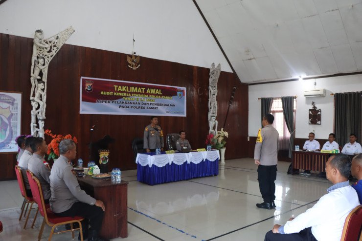 Papuanewsonline.com, Asmat – Polres Asmat melaksanakan Taklimat Awal Audit Kinerja Tahap II Tahun 2024 dalam rangka aspek pelaksanaan dan pengendalian yang berlangsung di Aula Wira Pratama Polres Asmat, Kamis (16/10/2024).Kegiatan ini dipimpin oleh Kapolres Asmat, AKBP Samuel Dominggus Tatiratu, S.I.K., yang didampingi oleh Ketua Tim Audit, Kompol Daniel Pawara, S.H., M.H. Acara ini juga dihadiri oleh jajaran Pejabat Utama (PJU) Polres Asmat, Para Kapolsek serta para personel Polres.Tim audit dari Itwasda Polda Papua yang hadir dalam kegiatan ini terdiri dari Ketua Tim Audit, Kompol Daniel Pawara, S.H., M.H., AKP Agus Laksono, S.H., (Anggota), Iptu Murtono, S.H., (Sekretaris), Penata Mulyanto Ahmad, A.Md., dan Briptu Rian, Brigadir yang ditunjuk selaku operator. Mereka akan melakukan audit kinerja terhadap berbagai aspek operasional Polres Asmat selama beberapa hari ke depan.Dalam sambutannya, Kapolres Asmat, AKBP Samuel Dominggus Tatiratu, S.I.K., menyampaikan rasa terima kasihnya kepada tim audit Itwasda Polda Papua yang telah hadir untuk memberikan evaluasi dan masukan konstruktif bagi Polres Asmat. Kapolres juga menekankan pentingnya audit ini sebagai sarana untuk memastikan peningkatan kualitas pelayanan kepada masyarakat serta transparansi dalam menjalankan tugas kepolisian.“Kami menyambut baik kegiatan audit ini, dan kami berharap melalui proses ini, Polres Asmat dapat semakin memperkuat kinerjanya, baik dalam hal administrasi maupun operasional, demi pelayanan yang optimal bagi masyarakat,” ujar Kapolres Asmat.Sementara itu, Ketua Tim Audit, Kompol Daniel Pawara, S.H., M.H., membacakan sambutan Bapak Irwasda Polda Papua, Kombes Pol. Drs., Yosi Muhamartha yang menjelaskan bahwa audit ini merupakan bagian dari Program Pengawasan Itwasda Polda Papua yang bertujuan untuk memastikan kepatuhan terhadap standar operasional dan tata kelola yang baik di seluruh jajaran kepolisian. Ia juga menegaskan bahwa hasil dari audit ini akan dijadikan bahan evaluasi demi perbaikan di masa mendatang.“Proses audit ini bukanlah untuk mencari kesalahan, tetapi untuk memberikan masukan yang bermanfaat bagi Polres Asmat agar kinerja ke depannya semakin baik dan terukur,” jelas Ketua Tim Audit mengutip sambutan Irwasda Polda Papua. Ketua Tim Audit juga menekankan arahan Bapak Irwasda Polda Papua, Kombes Pol. Drs. Yosi Muhamartha. Meskipun kondisi keamanan dan ketertiban masyarakat saat ini terpengaruh oleh persiapan pemilukada serentak tahun 2024, pelaksanaan audit harus tetap dilakukan sesuai dengan Program Kerja Pengawasan Tahunan (PKPT). Audit ini diharapkan dapat menjadi sarana untuk memperbaiki kinerja ke depan. Kegiatan dilanjutkan dengan pengarahan teknis terkait pelaksanaan audit, dengan pendalaman dan pemeriksaan kepada Subsatker di jajaran Polres Asmat. PNO-12