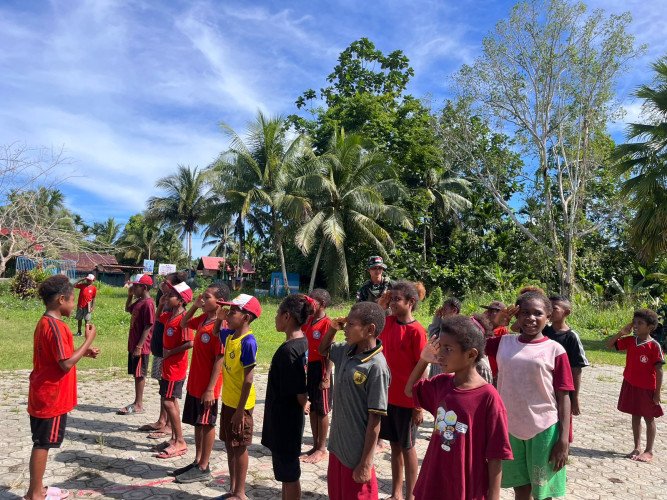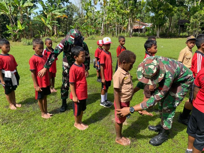 Tingkatkan Kualitas Pendidikan, Satgas Yonif 131/BRS Latih Kedisiplinan Siswa-Siswi SD Mosso