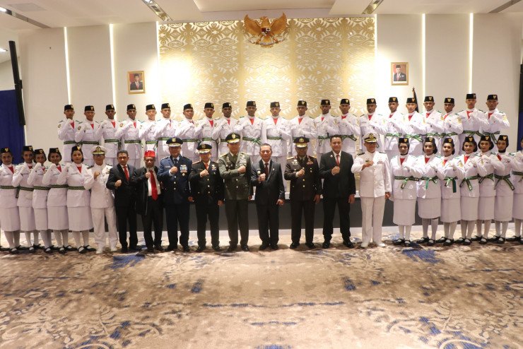Papuanewsonline.com, Jayapura – Wakapolda Papua Brigjen Pol. Patrige R. Renwarin, S.H., M.Si., menghadiri Upacara Pengukuhan Pasukan Pengibar Bendera Hari Ulang Tahun (HUT) Ke - 79 Kemerdekaan Republik Indonesia Tahun 2024 Tingkat Provinsi Papua., Jumat (16/08).Kegiatan TAPTU ini berlangsung di Aula Lt 9 Kantor Gubernur Provinsi Papua, Jl. Soa Siu Dok 2, Jayapura, Papua, dan turut dihadiri oleh Pj. Gubernur Provinsi Papua, Mayjen TNI (Purn) Ramses Limbong, S.Ip., M.Si, Ketua DPR Papua, Johny Banua Rouw, S.E, Ketua Pengadilan Tinggi Jayapura, Amin Sutik, S.H., M.H, Kapoksahli Pangdam XVII/Cenderawasih, Brigjen TNI Achmad Fauzi, S.I.P, serta tamu undangan terhormat lainnya.Dalam kesempatannya Pj. Gubernur Provinsi Papua Mayjen TNI (Purn) Ramses Limbong, S.IP., M.Si, selaku Inspektur Upacara menyampaikan untuk bersama-sama kita panjatkan puji syukur kehadirat Tuhan Yang Maha Kuasa, karena atas segala pertolonganNya, kita dapat mengikuti Upacara Pengukuhan Pasukan Pengibar Bendera Pusaka (PASKIBRAKA) Provinsi Papua Tahun 2024, dalam suasana yang bersahaja, aman, tertib dan lancar.“Hadirin yang saya hormati, khususnya adik-adik Paskibraka, tadi telah kita saksikan bersama bahwa adik-adik PASKIBRAKA telah dikukuhkan, hal ini Menandakan bahwa telah secara resmi menjadi Pasukan Pengibar Bendera Pusaka atau PASKIBRAKA Provinsi Papua Tahun 2024, yang akan melaksanakan tugas pada tanggal 17 Agustus 2024 besok,” ucap Pj. Gubernur Provinsi Papua.Lebih lanjut Ia menambahkan bahwa sejak bulan Juli sampai hari ini Pasukan Paskibra telah dilatih dan digembleng oleh para pelatih dari TNI/POLRI dan Purna Paskibraka Indonesia Provinsi Papua.“Tugas yang adik-adik laksanakan besok adalah tugas yang sangat berat, namun sangatlah mulia, Adik-adik merupakan tunas-tunas bangsa, harapan bangsa dan Negara yang menunjukkan sikap rela berkorban, meluangkan waktu dan tenaga untuk menjadi Pasukan Pengibar Bendera Pusaka,” pungkasnya.Kegiatan ini memiliki tujuan untuk menumbuhkan semangat nasionalisme dan cinta tanah air di kalangan generasi muda Papua, serta memperkokoh rasa persatuan dan kesatuan bangsa. (PNO-12)