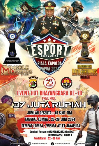 Papuanewsonline.com, Jayapura – Menjelang perayaan Hari Bhayangkara ke-78 tahun 2024, Polda Papua siap menggelar Kapolda Papua Esport Tournament 2024. Turnamen ini akan menampilkan dua kategori game populer, yaitu Mobile Legend dan PUBG Mobile, yang akan memperebutkan Piala Kapolda Papua serta hadiah uang pembinaan dengan total sebesar 37 juta Rupiah.Kabid Humas Polda Papua, Kombes Pol Ignatius Benny Ady Prabowo, S.H., S.I.K., M.Kom., selaku panitia penyelenggara, menjelaskan tujuan dari penyelenggaraan turnamen ini. "Kapolda Papua Esport Tournament 2024 diadakan sebagai upaya preventif dan edukatif terhadap remaja usia produktif yang rentan terhadap tindakan kriminal, penyalahgunaan narkoba, dan kejahatan siber," ujar Kombes Pol Ignatius pada Sabtu (22/6).Dalam turnamen ini, pesan-pesan keamanan dan ketertiban masyarakat (kamtibmas) akan disisipkan di setiap sesi pertandingan, baik secara offline maupun online. Pesan-pesan tersebut akan mencakup imbauan untuk menghindari tindakan kriminal, penyalahgunaan narkoba, dan kejahatan siber."Turnamen ini terbuka untuk umum. Tim-tim yang telah terbentuk dapat mendaftarkan diri kepada panitia dengan menghubungi contact person yang tertera pada flyer lomba," tambah Kombes Pol Ignatius.Penyelenggaraan Kapolda Papua Esport Tournament 2024 ini tidak hanya sebagai ajang kompetisi, tetapi juga sebagai sarana untuk mendidik dan mengedukasi para remaja mengenai pentingnya menjaga diri dari pengaruh negatif. "Dengan adanya turnamen ini, kami berharap para remaja dapat terlibat dalam kegiatan positif yang tidak hanya mengasah keterampilan bermain game, tetapi juga meningkatkan kesadaran mereka tentang bahaya kejahatan dan narkoba," tegas Kombes Pol Ignatius.Esport Tournament ini merupakan bagian dari rangkaian acara dalam menyambut Hari Bhayangkara ke-78, yang menjadi momentum penting bagi Polda Papua untuk lebih dekat dengan masyarakat, khususnya generasi muda.“Melalui kegiatan ini, diharapkan dapat tercipta generasi yang lebih baik, yang tidak hanya mahir dalam bidang teknologi dan permainan digital, tetapi juga memiliki kesadaran tinggi akan pentingnya hidup sehat dan bebas dari pengaruh negative,” pungkas Kabid Humas.Turnamen ini diharapkan mampu menarik minat banyak tim dari berbagai daerah untuk berpartisipasi, sekaligus menjadi ajang untuk menunjukkan bakat dan kemampuan mereka dalam dunia esports. Dengan total hadiah yang menggiurkan, turnamen ini dipastikan akan menjadi salah satu acara yang paling dinantikan oleh para penggemar game Mobile Legend dan PUBG Mobile di Papua. (PNO-12)