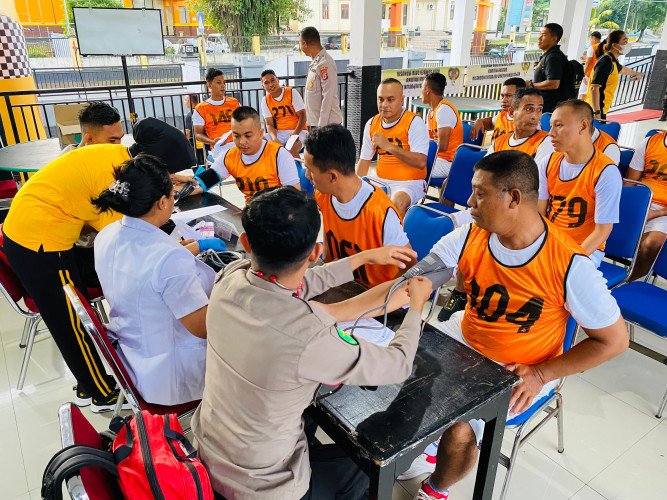 Papuanewsonline.com, Ambon - Sebanyak 58 calon siswa (casia) Bintara Polri Panda Polda Maluku Tahun 2026 menjalani pemeriksaan kesehatan tahap dua di Rumah Sakit Bhayangkara Ambon, Jumat (12/12/2025).Pemeriksaan kesehatan terhadap puluhan peserta seleksi penerimaan Bintara Brimob Polri dilakukan oleh tenaga medis dari Bidang Kedokteran dan Kesehatan (Biddokkes) Polda Maluku.Kabid Humas Polda Maluku, Kombes Pol Rositah Umasugi, S.I.K, mengungkapkan, peserta menjalani pemeriksaan kesehatan meliputi Rontgen, pemeriksaan Darah, Pemeriksaan Urine dan pemeriksaan Kesehatan Jiwa.Menurutnya, rikkes tahap dua merupakan salah satu tahapan penting dalam seleksi penerimaan Bintara Brimob Polri. Ini bertujuan untuk memastikan calon anggota Polri memiliki kondisi kesehatan yang prima sebelum melanjutkan ke tahapan seleksi berikutnya. Menurutnya, pelaksanaan tahapan rikkes dua berjalan tertib dan lancar. "Kegiatan ini diharapkan dapat mendukung proses seleksi yang transparan dan akuntabel, sehingga menghasilkan calon anggota Polri yang berkualitas dan siap mengabdi kepada masyarakat," harapnya.Untuk diketahui, rikkes tahap dua turut dihadiri Karo SDM dan Kabid Dokkes Polda Maluku. PNO-12
