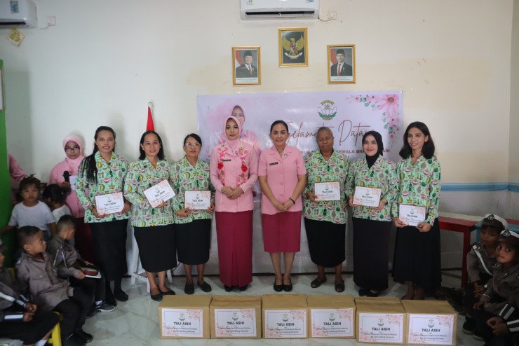 Papuanewsonline.com, Aru - Kapolda Maluku Irjen Pol. Prof. Dr. Dadang Hartanto, S.H., S.I.K., M.Si bersama Ketua Bhayangkari Daerah Maluku, Ny. Vitri Dadang Hartanto, memberikan bantuan atau tali asih kepada PAUD Kemala Bhayangkari Kepulauan Aru, Rabu (10/12/2025). Penyerahan tali asih diberikan langsung oleh Ketua Bhayangkari Daerah Maluku, selaku Ketua Yayasan Kemala Bhayangkari (YKB) Maluku dalam rangkaian kegiatan peninjauan PAUD Kemala Bhayangkari oleh Kapolda bersama rombongan.Bantuan yang disalurkan tersebut menegaskan komitmen kuat Polda Maluku dan Bhayangkari dalam mendukung pendidikan anak usia dini. Sebelumnya, Kapolda dan Ketua Bhayangkari menyapa anak-anak satu per satu, menciptakan interaksi hangat dan membangun kedekatan antara jajaran Polda Maluku dengan lingkungan pendidikan usia dini."Bantuan ini menjadi bentuk perhatian dan dukungan kami terhadap peningkatan fasilitas pembelajaran dan kesejahteraan tenaga pengajar di PAUD Kemala Bhayangkari Kepulauan Aru," kata Ny. Vitri Dadang Hartanto di sela-sela kegiatan.Kehadiran PAUD Kemala Bhayangkari di Kepulauan Aru menunjukan komitmen Polda Maluku dan Bhayangkari beserta jajarannya terhadap dunia pendidikan usia dini.Kapolda Maluku menyampaikan apresiasi yang tinggi atas hadirnya PAUD Kemala Bhayangkari. “Saya sangat mengapresiasi dedikasi para guru dan pengurus PAUD Kemala Bhayangkari yang telah membimbing anak-anak kita dengan penuh kesabaran dan kasih sayang," ungkap Kapolda. Pendidikan usia dini, kata Kapolda, merupakan pondasi penting dalam membentuk karakter generasi masa depan. "Kami berharap kehadiran kami hari ini dapat memberikan semangat baru bagi para guru dan kebahagiaan bagi anak-anak,” harap Kapolda.Ia juga menegaskan komitmen Polda Maluku dan Bhayangkari dalam mendukung lingkungan pendidikan yang aman, nyaman, dan inspiratif bagi anak-anak. PNO-12