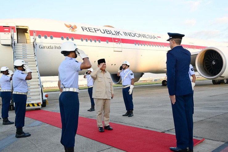 Papuanewsonline.com, Jakarta-, Pesawat Garuda Indonesia-1 yang membawa Presiden RI Prabowo Subianto tiba di Air Base Galeão, Rio de Janeiro, Brasil, Sabtu (05/07/2025) pagi, sekitar pukul 06.30 waktu setempat.Kedatangan Presiden Prabowo di kota Rio de Janero ini adalah untuk menghadiri Konferensi Tingkat Tinggi (KTT) BRICS 2025 di sela agenda kunjungan kenegaraan Presiden Prabowo ke Brasil.Setibanya di landasan Air Base Galeão, Presiden Prabowo disambut dengan upacara kehormatan militer. Tampak hadir menyambut Presiden Prabowo, yakni Sekretaris Promosi Perdagangan, Sains, Teknologi, Inovasi, dan Budaya Kementerian Luar Negeri Brasil Duta Besar Laudemar Gonçalves de Aguiar Neto, Komandan Airforce Base Galeão Kolonel Marcell Barros de Paula, Duta Besar RI di Brasilia Edi Yusup, serta Atase Pertahanan KBRI Brasilia Kol. Rizal Ashwam.Diketahui, Kehadiran Presiden Prabowo di KTT BRICS 2025 merupakan kehadiran perdana Indonesia sejak pertama kali bergabung dalam forum organisasi tersebut di awal tahun 2025.(Ning)