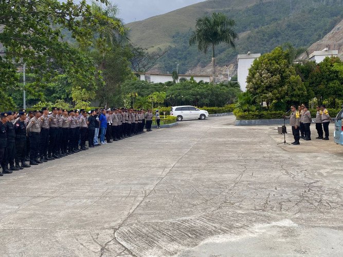 Personel Ops Mantap Praja Cartenz Polda Papua Gelar Apel Pengamanan Debat Publik