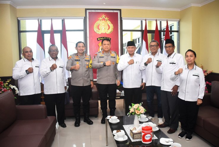 Papuanewsonline.com, Ambon - Kapolda Maluku Irjen Pol. Drs. Eddy Sumitro Tambunan, M.Si menerima kunjungan audiens dengan pengurus Forum Kerukunan Umat Beragama (FKUB) Provinsi Maluku.Audiens yang berlangsung di ruang tamu Kapolda Maluku Rabu (28/8/2024) turut dihadiri Wakapolda Direktur Intelkam, Direktur Binmas dan Kabid Humas Polda Maluku.Pengurus FKUB yang melakukan audiens dengan Kapolda dipimpin oleh Ketua, Ustadz Prof Abdullah Latuapo, Wakil Ketua FKUB, Pdt Ricardo Rikumahu dan Pastor R. D. Paulus, Wakil Sekertaris FKUB Drs. H. Abdul Kadir El, Bendaraha FKUB Loh Lih Lih dan anggota FKUB Pdt Wleem B. Pariama.Kapolda dalam pertemuan itu berharap kepada para tokoh agama di Maluku ini agar dapat bersama-sama mengajak seluruh elemen masyarakat untuk senantiasa menjaga situasi kamtibmas.Menurutnya, peran pengurus FKUB sangat penting dan dibutuhkan dalam menciptakan Maluku yang aman dan damai. "Mari kita sama-sama menjaga Maluku yang aman dan damai. Apalagi menjelang Pilkada serentak nanti. Kita berikan pencerahan yang baik, saling menjaga toleransi antar sesama kita orang basudara di Maluku," harapnya. (PNO-12)