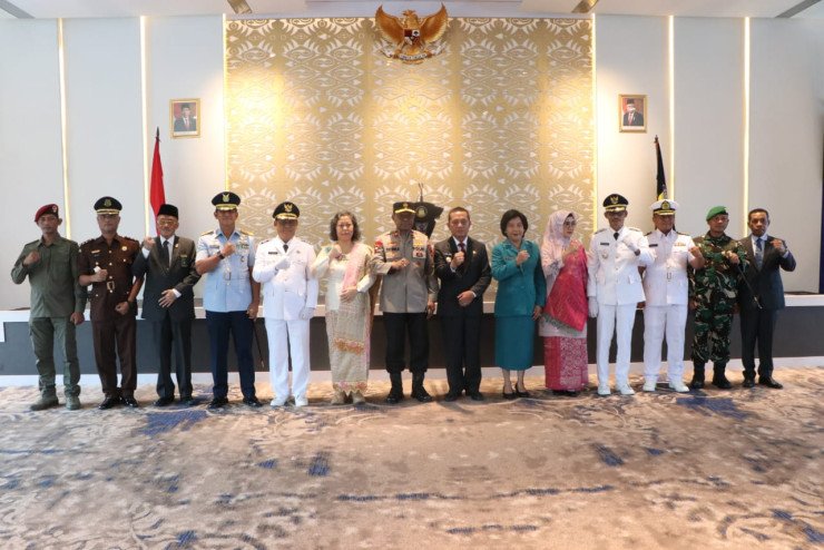 Papuanewsonline.com, Jayapura – Wakil Kepala Kepolisian Daerah Papua, Brigjen Pol. Patrige R. Renwarin, S.H., M.Si. menghadiri kegiatan pengambilan sumpah janji jabatan dan pelantikan Pejabat Bupati Sarmi dan Bupati Jayapura oleh Penjabat Gubernur Papua Mayjen TNI (Purn) Ramses Limbong, S.IP., M.Si, bertempat di Aula Lukmen II Kantor Gubernur Papua, Kamis (15/08/2024).Turut hadir dalam acara tersebut Danlanud Silas Papare Marsma TNI Indan Gilang Buldansyah, S.Sos., Sekda Provinsi Papua Dr. M. Ridwan Rumasukun, S.E., M.M, Asisten I Bidang Umum Setda Provinsi Papua Yohanes Walilo, S.Sos.,M.Si., Asisten III Setda Provinsi Papua Y. Derek Hegemur, S.H., M.H.Pj. Bupati Sarmi Iman Djuniawal merupakan Kepala Dinas Kelautan dan Perikanan Papua dilantik menggantikan Markus Mansnembra, lantaran mengundurkan diri dari jabatannya karena maju dalam Pilkada Serentak 2024.Sementara Pj Bupati Jayapura, Samuel Siriwa merupakan Kepala Dinas Tanaman Pangan, Hortikultura dan Pangan Papua, dilantik menggantikan penjabat sebelumnya yakni Triwarno Purnomo selama setahun delapan bulan.“Dengan begitu bisa saja dua bulan atau tiga bulan saja, bisa juga diperpanjang setelah satu tahun. Penjabat kepala daerah dievaluasi setiap tiga bulan, apakah lanjut atau tidak,” kata Ramses dalam sambutannya.Dia memberikan apresiasi terhadap dua penjabat sebelumnya yang telah melaksanakan tugas dengan baik, berdedikasi dan loyalitas.Sementara itu, Ramses meminta dua penjabat bupati yang baru untuk melaksanakan tugas dengan baik, terutamanya menyukseskan Pilkada Serentak nanti.“Saya minta penjabat bupati segera bekerjasama dengan forkopimda dan pihak legislatif dalam pemeliharaan ketentraman masyarakat dan kondusifitas daerah. Fasilitasi dengan baik persiapan Pilkada agar berjalan aman dan lancar,” ujar Ramses.Selain itu, dia ingatkan agar memastikan seluruh ASN di wilayah masing-masing agar tetap netral. “ASN tidak boleh memihak ke calon tertentu dan tidak boleh menggunakan fasilitas negara untuk kampanye dan sebagainya,” harapnya.Selain Pilkada Serentak, dua penjabat diminta menyukseskan program strategis pemerintah mulai penanganan stunting, pengendalian inflasi, ketahanan pangan, penurunan angka pengangguran serta penanggulangan kemiskinan ekstrem. (PNO-12)