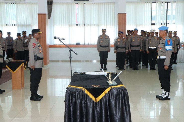 Papuanewsonline.com, Jayapura – Wakapolda Papua Brigjen Pol Patrige R Renwarin, S.H., M.Si., melaksanakan kegiatan Upacara Serah Terima Jabatan dan Pisah Sambut Dir Binmas Polda Papua Tahun 2024, Rabu (14/08).Kegiatan Upacara ini berlangsung di Aula Rastra Samara Mako Polda Papua, Jl. Dr. Sam Ratulangi No.8, Bayangkara, Kec. Jayapura Utara, Kota Jayapura, Papua, dan turut dihadiri oleh Irwasda Polda Papua, Kombes Pol. Drs. Yosi Muhamartha, serta Para PJU Polda Papua.Dalam amanahnya Wakapolda Papua menyampaikan bahwa serah terima jabatan Dirbinmas Polda Papua, sebelumnya pada bulan lalu sebanyak 12 Kapolres dan 2 PJU Polda Papua sudah kita sertijabkan, sungguh pencapaian yang luar biasa bagi Polda Papua.“Saya mengucapkan terimakasih dan apresiasi kepada Kombes Pol. Gatot Aris Purbaya atas loyalitas dan kinerjanya selama menjabat sebagai Dirbinmas Polda Papua, dan saya juga mengucapkan selamat untuk jabatan baru yang diemban sebagai Kasubditcakkal Ditpolsatwa Korsbhara Baharkam Polri, saya yakin dan percaya dengan jabatan baru ini Pak Aris akan menjadi pribadi yang semakin mantap dan semakin sukses,” ucapnya.Lebih lanjut Ia menambahkan bahwa saat ini Situasi Kamtibmas di wilayah hukum Polda Papua relatif aman, walaupun ada beberapa aksi hingga menimbulkan korban jiwa, namun hal tersebut tidak mengganggu aktifitas masyarakat dan Pemerintahan.“Saya mengucapkan selamat jalan, selamat bertugas ditempat yang baru, saat ini kita hanya berpisah raga tapi tali silaturahmi tetap harus tetap terjaga, dan saya yakin, Papua bukan tempat baru bagi Pak Erick, karena itu saya berharap Pak Erick segera menyesuaikan dengan dinamika yang ada,” tutup Wakapolda Papua.Bahwa Upacara Serah Terima Jabatan dan Pisah Sambut Dir Binmas Polda Papua dari Kombes Pol Gatot Aris Purbaya, S.I.K. (masa jabatan 3 tahun 2 bulan), Kepada Kombes Pol. Erick Kadir Sully, S.I.K. PNO-12