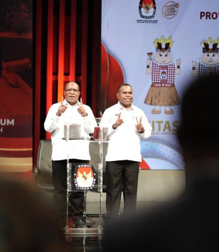 - Pasangan Calon Gubernur dan Calon Wakil Gubernur Provinsi Papua Tengah, John Wempi Wetipo dan Agustinus Anggaibak paparkan Visi dan Misi dalam debat kedua Pilgub Papua Tengah, yang berlangsung di Studio 5 Metro TV Jakarta pada Sabtu, (9/11/2024).