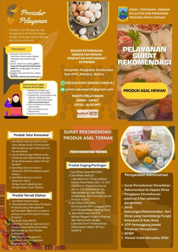 Program ini menjadi bagian penting dalam upaya pemerintah daerah menciptakan tata kelola pelayanan publik yang cepat, transparan, akuntabel, serta mendukung sistem keamanan pangan asal hewan (Kesmavet) di wilayah Papua Tengah. Melalui penyebaran brosur resmi dan media digital, masyarakat kini dapat memperoleh informasi lengkap mengenai prosedur, persyaratan, serta alur pengajuan surat rekomendasi tanpa harus datang langsung ke kantor dinas.
