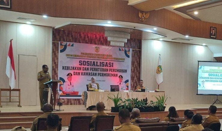 Papuanewsonline.com, Timika – Dinas Perumahan Kawasan Permukiman dan Pertanahan (PKPP) Kabupaten Mimika menggelar sosialisasi kebijakan dan peraturan perumahan serta kawasan permukiman yang diikuti para kepala OPD, kepala distrik, lurah, dan pengembang perumahan.