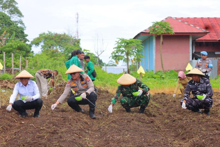 Dukung Swasembada Pangan 2025, Kapolres Tual dan Wakil Walikota Tanam Jagung Serentak