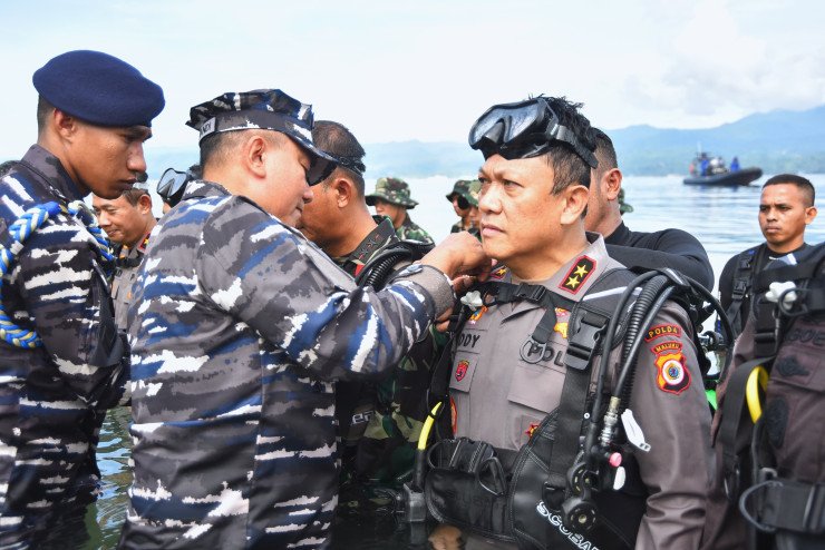 Hadiri Peresmian Rumpon Ikan, Kapolda Maluku Terima Penyematan Brevet Selam Dasar Militer