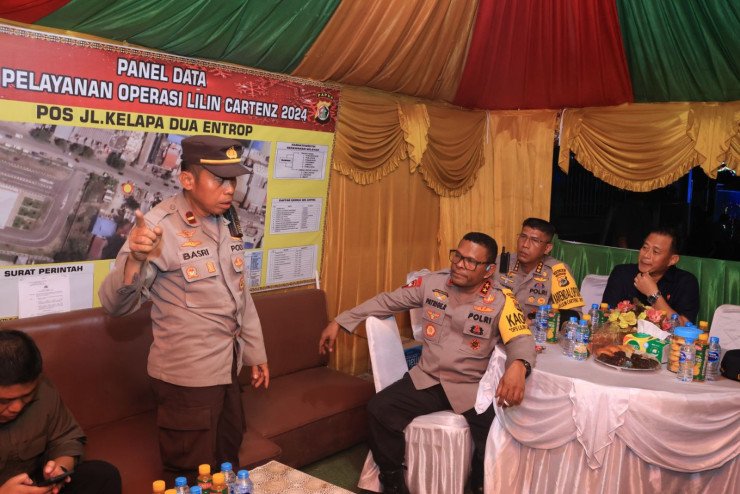 Papuanewsonline.com, Jayapura – Kapolda Papua, Irjen Pol Patrige R. Renwarin, S.H., M.Si dan Wakapolda Papua, Brigjen Pol Dr. Faizal Ramadhani, S.Sos.,S.I.K.,M.H. bersama dengan Pejabat Utama Polda Papua, melakukan pengecekan pos pengamanan dan pelayanan Operasi Lilin Cartenz 2024, pada Selasa (31/12/2024).