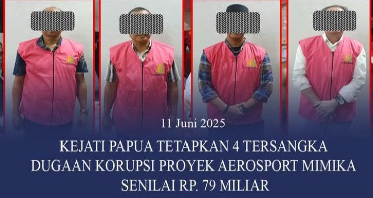 " Benar, Berdasarkan dua alat bukti yang cukup, tim penyidik menetapkan empat tersangka, yaitu PJK – Direktur PT Karya Mandiri Permai, RK – Direktur PT Mulia Cipta Perkasa, S Pejabat Pembuat Komitmen (PPK) dan DRHM Pengguna Anggaran (PA)," ujar Asisten Tundak Pidana Khusus (Aspidsus) Kejati Papua, Nixon Mahuse di Jayapura, Rabu (11/6/2025), Malam.