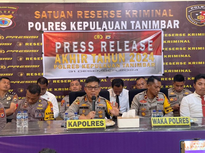 Papuanewsonline.com, Tanimbar – Kepolisian Resor Kepuluan Tanimbar, Menjelang akhir Tahun 2024, Polres Kepulauan Tanimbar menggelar Pers Release akhir Tahun yang berlangsung di Ruang Gelar Anindya Yodha Satuan Reskrim Polres Kepulauan Tanimbar, Selasa (31/12/24) pagi.