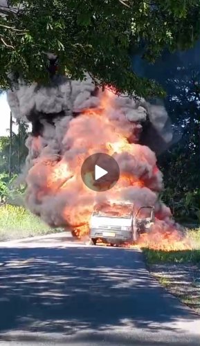 Dalam sebuah video yang beredar di grup WhatsApp, mobil pick up tersebut terlihat dilenyapkan oleh api. Kronologi kejadian masih belum jelas, namun diperkirakan kebakaran terjadi karena mobil membawa bensin.
