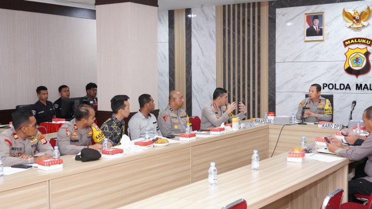 Saat rapat yang digelar di ruang PJU Mapolda Maluku, Jumat (31/1/2025), Wakapolda memantau perkembangan situasi kamtibmas di lokasi bentrok antar warga yang terjadi beberapa waktu lalu. Diantaranya di kawasan Tugu Trikora dan Leihitu (Hitu-Wakal).